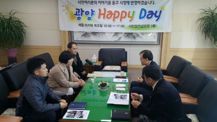 한편, 38회 째를 맞은 광양해피데이는 지금까지 1,400명의 시민들이 방문해 760건의 다양한 민원사항과 시정발전 제안사항의 건의가 이뤄졌다.