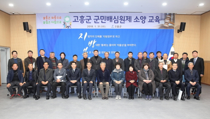 고흥군은 지난 31일 고흥분청문화박물관에서 군민배심원제 구성원과 5급 이상 간부공무원 80여 명이 참석한 가운데 ‘군민 배심원제 소양 교육’을 실시했다.