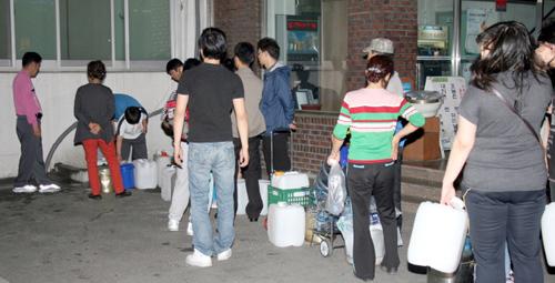 | ▲ 5일째 계속되고 있는 구미 단수대란 사태가 한국수자원공사의 늑장대응이 빚은 인재라는 점에서 시민 분노가 극에 달하고 있다. 11일 오후 경북 구미시 인동 주민들이 물 공급을 받기 위해 차례를 기다리고 있다. ⓒ뉴시스 |