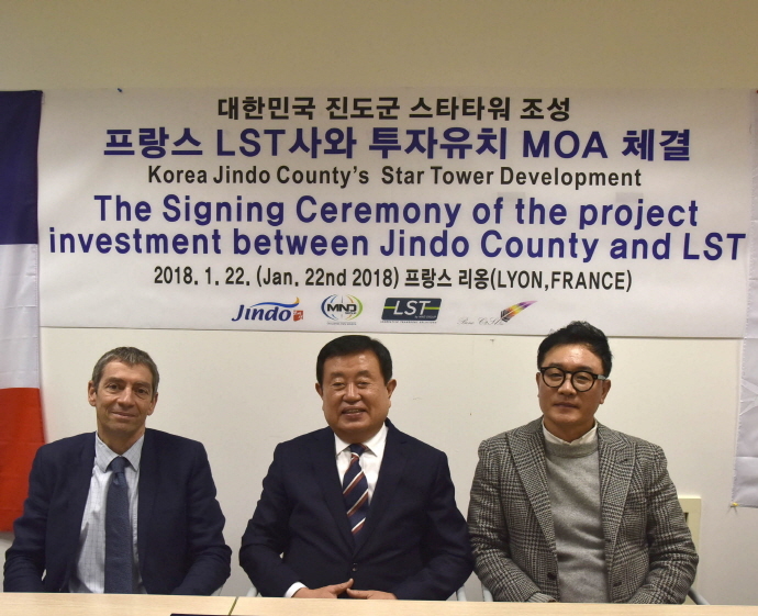 진도군은 세계적 수준의 종합 레저형 200M 높이의 스타 타워 조성을 위해 지난 1월 22일(월) 프랑스 MND그룹의 LST 회사로부터 3,000만달러(US달러)이상 투자를 위한 투자합의각서(MOA)를 체결했다고 밝혔다.