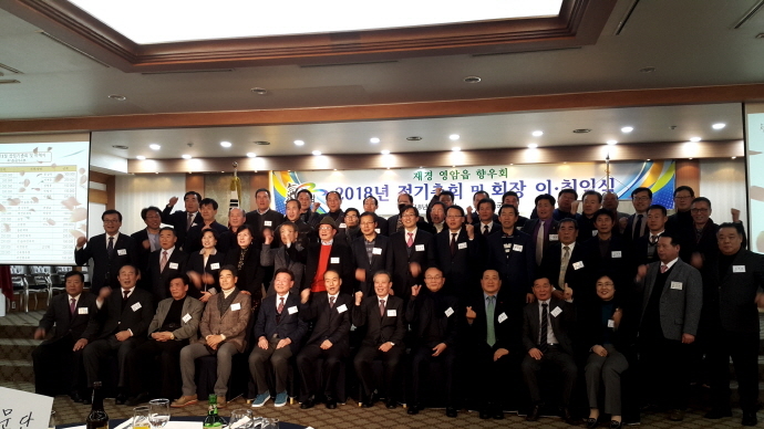 재경 영암읍향우회는 지난 29일 육군회관에서 태극홀에서 신창석 영암군향우회장, 박석남, 문동완, 문병호, 신승현고문과 우승희 전남도의회의원, 김철호, 박찬종, 고화자 영암군의회의원, 임용기 영암읍장, 양승만 영암읍문체위원장, 조민환 읍 이장단장, 박도상 영암농협장 등 100여명이 참석한 가운데 2018년 재경 영암읍향우회 정기총회 및 이·취임식 행사를 개최하였다.
