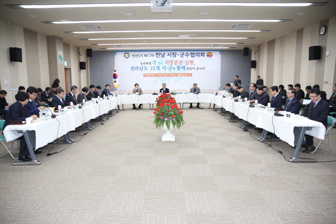전라남도시장군수협의회(회장 박병종 고흥군수)는 지난 2일 순천만국제습지센터에서 민선6기 제17차 정례회를 갖고 지방분권 개헌을 위한 천만인 서명운동 추진과 시군 공동 현안을 논의하였다.