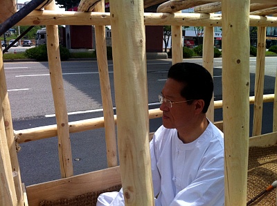 | ▲ 스스로 함거에 갖힌 정운천 전 한나라당 최고위원 ⓒ쌍발통뉴스 |