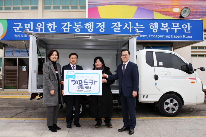 무안군(군수권한대행 장영식)은 지난 달 31일 군청 광장에서 초록우산 어린이재단이 주관하고 현대자동차그룹 후원하는 기프트카 캠페인 시즌8 차량 전달식을 가졌다고 밝혔다.