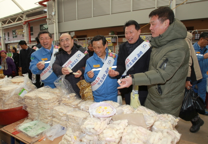 첫날인 2월 6일 광양5일시장을 방문한 정현복 광양시장, 김학동 포스코광양제철소장, 이백구 광양상공회의소 회장 등 임원 40여 명은 온누리상품권으로 직접 제수용품을 구입하며, 상인들과 소통의 시간을 가졌다.