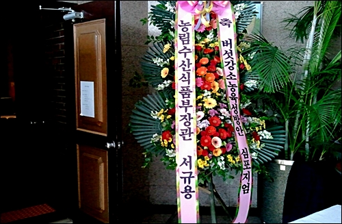 | ▲ 25일 한 행사에 보내온 서규용 장관 명의의 화환. ⓒ전국농민회 |