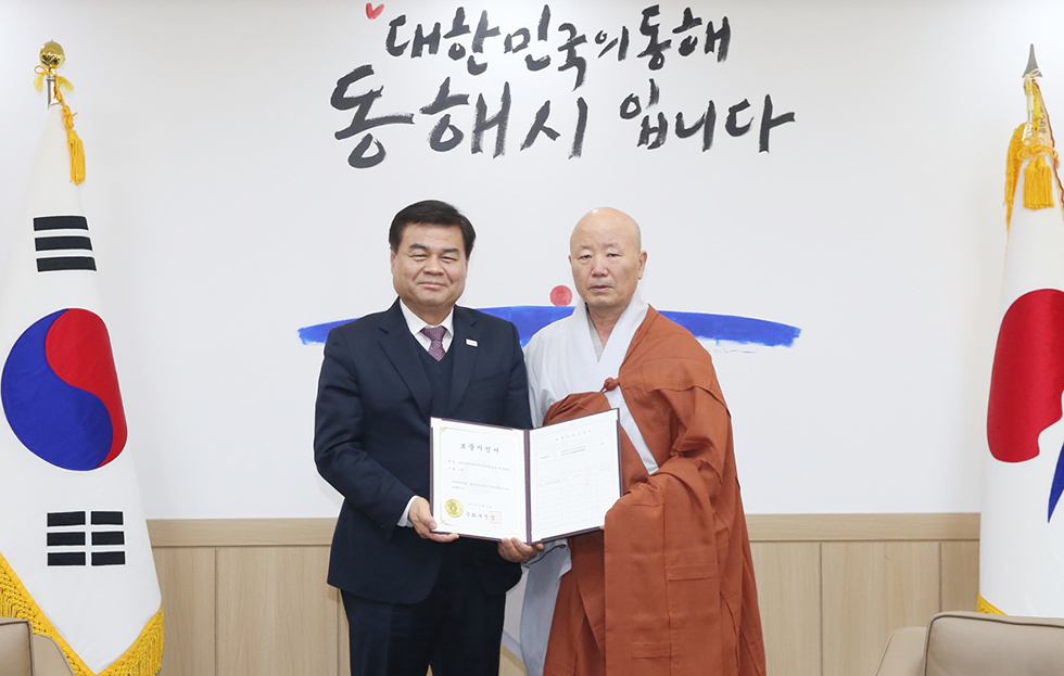 동해시, 향운암 국가지정문화재 보물지정서 전수