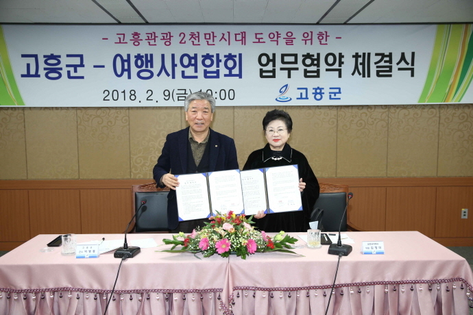 고흥군(군수 박병종)과 여행사연합(회장 김형미)은 2월 9일 고흥군청 상황실에서 고흥관광 2천만 시대 실현과 상호발전을 위한 업무협약을 체결했다.