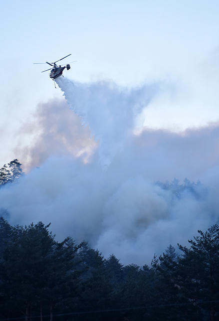 아울러, 12일 오전 7시 17분께 일출과 동시에 산림청, 지방자치단체 임차, 소방·군 헬기 등 총 19대의 산림헬기와 1200여 명의 진화인력을 투입했다.