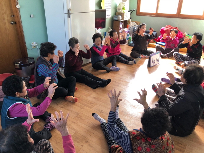 어르신 장수체조교실에서는 농촌 어르신들은 대상으로 생활체조, 요가, 스트레칭과 생활체조, 라인체조 등 다양한 건강체조를 통해 근력강화와 퇴행성질환을 예방하게 된다.