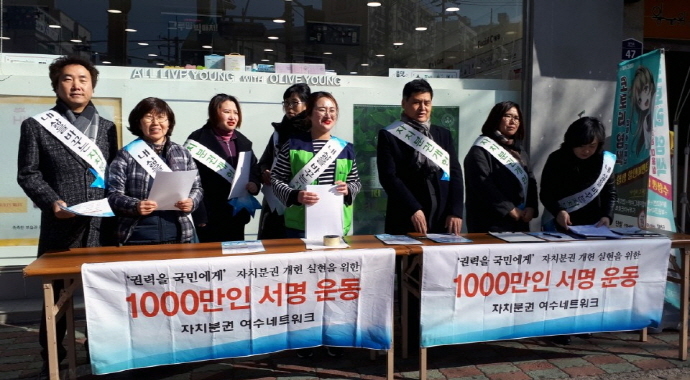 자치분권 여수네트워크의 ‘지방분권 개헌 1000만인 서명운동’ 실적이 목표치의 110%를 넘어섰다.