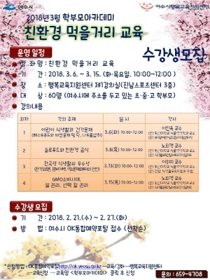 모집인원은 여수시에 주소를 둔 초·중·고등학생 학부모 60명이며 이달 21일부터 27일까지 시 홈페이지에서 신청하면 된다.