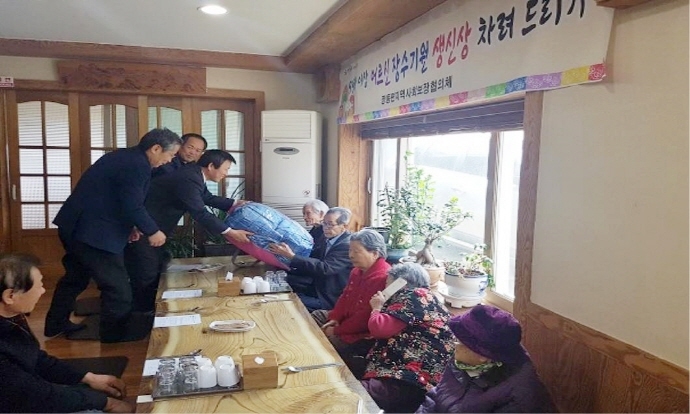 이날 행사는 새해인사 및 장수기원 생신축하, 케익절단식, 선물(장수지팡이, 이불)증정이 이뤄졌다.