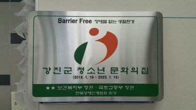 강진군청소년문화의집이 최근 보건복지부 장관, 국토교통부 장관 위탁 기관인 한국장애인개발원으로부터 강진군 최초로 장애물 없는 생활환경(BF:Barrier Free)인증서를 받았다.