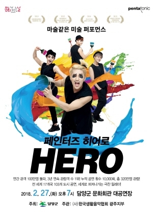 넌버벌 퍼포먼스(리듬, 비트, 스텝만으로 무대를 이끄는 공연)로 전 세계 17개국 103개 도시공연을 펼치며 극찬 릴레이를 이어가고 있는 ‘페인터즈 히어로’는 배우들이 무대 위에서 미술 작품이 만들어지는 과정을 경쾌한 마임과 신나는 춤을 통해 표현하는 것이 특징이다. 배우들이 음악에 맞춰 뛰고 흔들면서 물감을 뿌리면 어느새 대형 그림이 완성되는 마술 같은 장면을 선보인다.