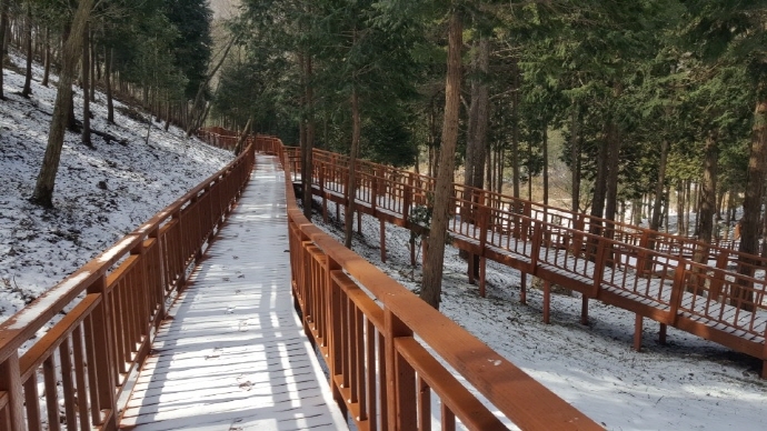 ‘무장애 숲길’은 한국산림복지진흥원의 녹색자금(복권기금) 4억5,000여만원 등 총 6억4,000여만원을 투입해 지난 2016년부터 2017년까지 2년 동안 공사를 실시했다.