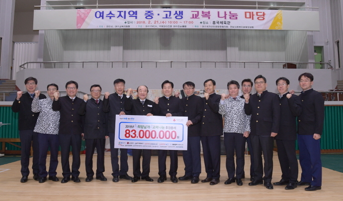 이날 여수산단 입주 12개 기업 등은 저소득 중·고등학생의 교복 마련을 위해 8300만 원을 후원했다.