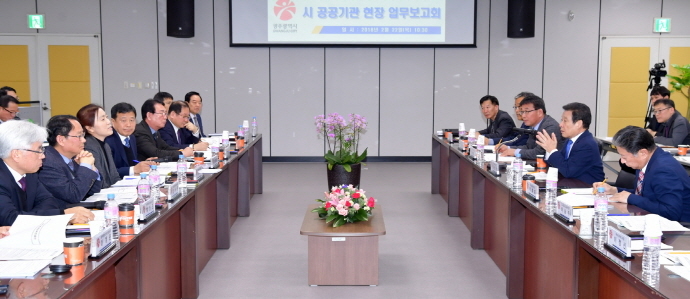 업무보고는 광주도시공사, 광주도시철도공사 등 6개 공공기관장과 시 기획조정실장, 관련 실·국장을 비롯한 관계자들이 참석해 현안을 공유하는 방식으로 진행됐다.