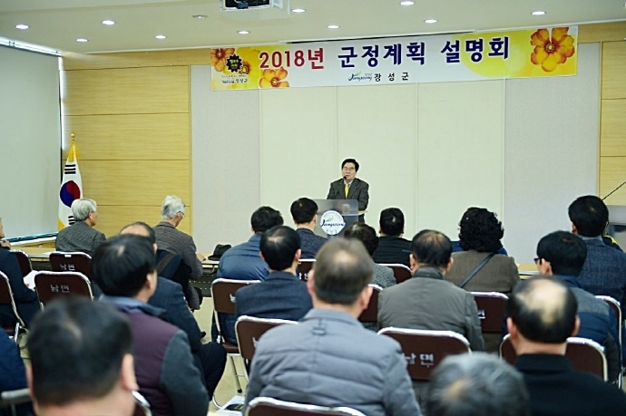 장성군은 26일부터 28일까지 3일간 11개 읍·면 행정복지센터(읍·면사무소)에서 올해 장성군의 주요 사업을 설명하는 ‘2018 군정계획 설명회’를 개최한다고 26일 밝혔다. 첫날인 26일엔 남면·북일면·황룡면에서, 27일엔 삼서면·삼계면·장성읍·서삼면에서, 28일엔 북이면·북하면·동화면·진원면에서 설명회를 연다.
