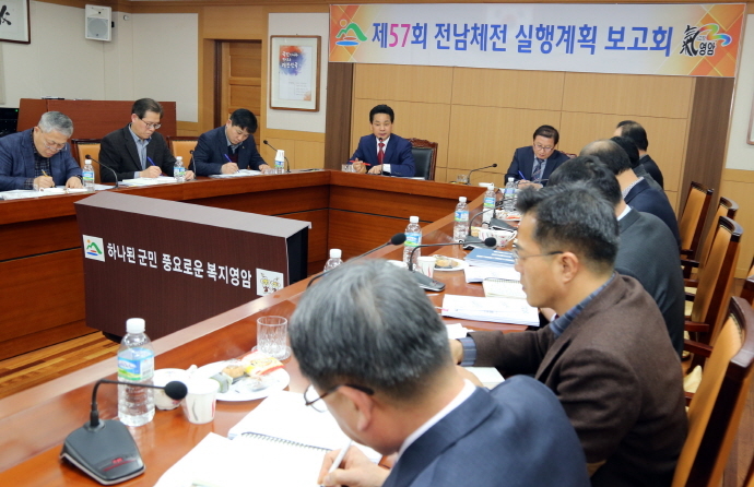 영암군(군수 전동평)은 지난 26일 군청 낭산실에서 4월 19일부터 4월 22일까지 4일 간 펼쳐지는 제57회 전라남도체육대회의 성공적인 개최를 위해 담당 분야별 실행계획 보고회를 개최했다.