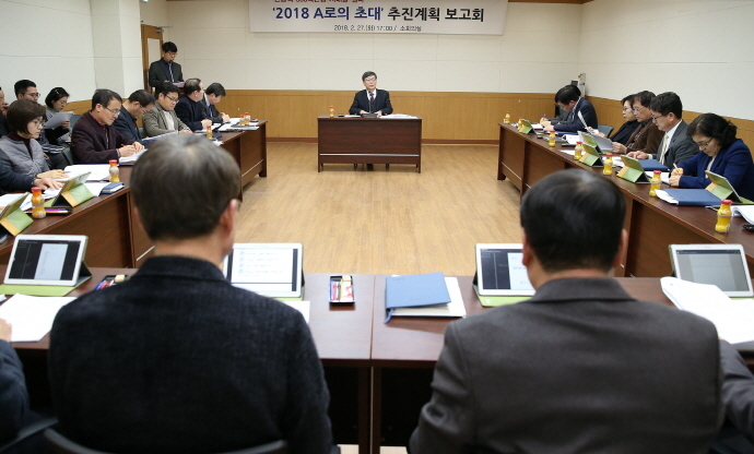 강진군이 지난 27일 군청 소회의실에서 ‘2018 A로의 초대’ 성공적인 추진을 위해 담당 실과소별 추진계획 보고회를 개최했다.