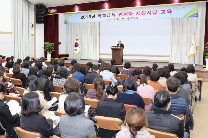 이를 위해 시는 지난 3월 5일 시청 대회의실에서 보육시설, 유치원, 초·중·고등학교 학교급식 관계자 등 180여 명이 참석한 가운데 ‘2018년도 학교급식 지원사업 지침시달 교육’을 실시했다.