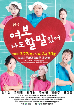 군 관계자는 “중장년층의 진솔한 이야기를 담고 있는 ‘여보, 나도 할 말 있어’는 가족과 이웃이 함께 재미와 감동을 느낄 수 있는 뜻깊은 공연이 될 것으로 기대된다 ”고 말했다.