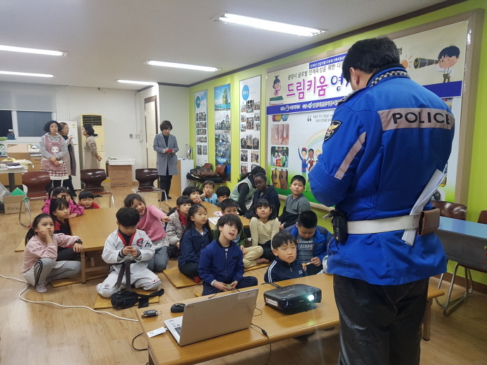 광양경찰서(서장 박종식)는 7일 오후 5시 중마동 성호아파트 2차 단지 내 드림키움 영재스쿨을 방문, 다문화가족 자녀 30여명을 대상으로 어린이 교통안전교육을 실시했다.