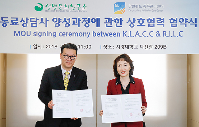 이를 위해 센터는 9일 서강대학교 다산관에서 서강대 생명문화연구소(소장 강선경)와 ‘동료상담사 양성과정’ 개설을 위한 산학협력의향서를 체결했다.