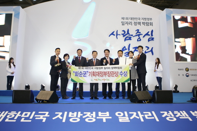 화순군(군수 구충곤)이 고양시 킨텍스에서 열린 '제1회 대한민국 지방정부 일자리 정책 박람회'에서 일자리 정책 우수기관으로 선정되 기획재정부장관 기관표창을 수상했다.