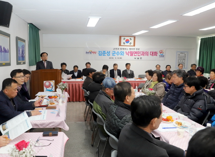 이번 대화는 비교적 행정참여 기회가 적은 우리군 유일한 도서지역인 낙월도를 찾아 지난해 군정 주요 성과와 2018년 군정보고, 낙월면 현안사업 보고에 이어 군정 및 지역 발전을 위한 주민의 다양한 건의사항을 청취하는 등 훈훈한 분위기 속에 지역의 비전을 위한 의견수렴의 시간을 가졌다.