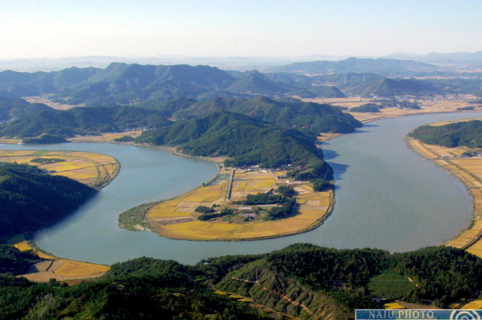 나주시 동강면 소재지에서 무안 방향으로 가다 보면 옥정리 우측에서 한반도 지형 느러지 곡강을 안내하는 이정표가 있다. 이정표에 따라 비룡산 정상에 오르면 남도지역에서 유일하게 한반도지형을 닮은 느러지를 관망할 수 있으며, 건너편에는 ‘곡강정’과 ‘느러지전망대’가 자리잡고 있다. 곡강정은 영산강이 나주를 거쳐 무안 땅에 이르기 전에 강폭이 넓어지면서 산간부에 부딪혀 곡류하는 지점에 세운 정자다. ’S’자 형태로 굽이도는 이 지형을 지역민들은 ‘한반도 느러지’라고 부른다.