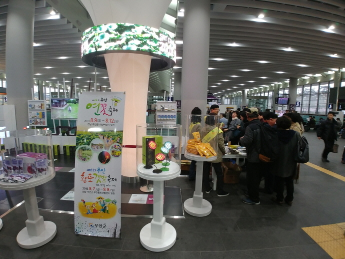 또한 농·특·임산물 및 중소기업제품을 홍보하기 위해 특산물(양파즙, 돌김, 와송즙 등) 및 중소기업제품(구운소금, 미용소금 등)을 홍보관에 전시하고 시식행사를 마련해 수서역을 찾는 많은 이용객들의 눈길을 끌었다.