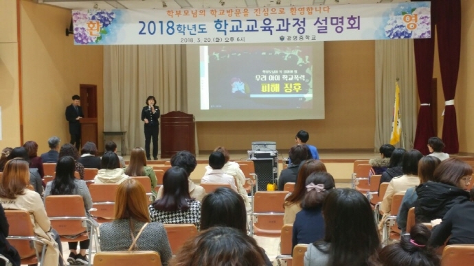 광양경찰서(서장 박종식)는 20일 광영중학교를 방문, 학부모를 대상으로 학교폭력 예방교육을 실시했다.