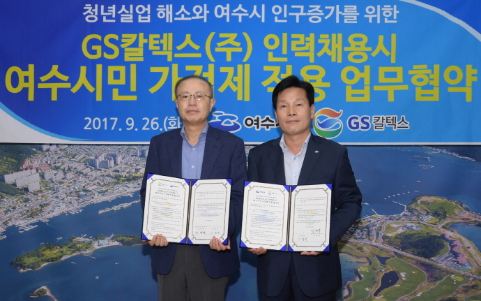 앞서 주철현 여수시장과 김병열 GS칼텍스 사장은 지난해 9월 26일 인력채용 시 여수시민에게 가점제를 적용하는 내용의 협약을 체결했다.