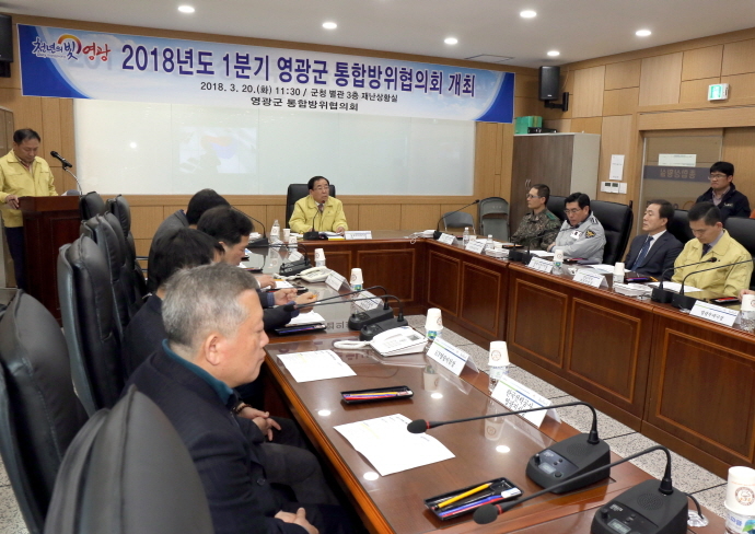 영광군은 지난 20일 군청 재난상황실에서 유관기관, 사회단체장 등 20여명의 통합방위협의회 위원이 참석한 가운데 ‘2018년도 1분기 통합방위협의회’를 개최했다.