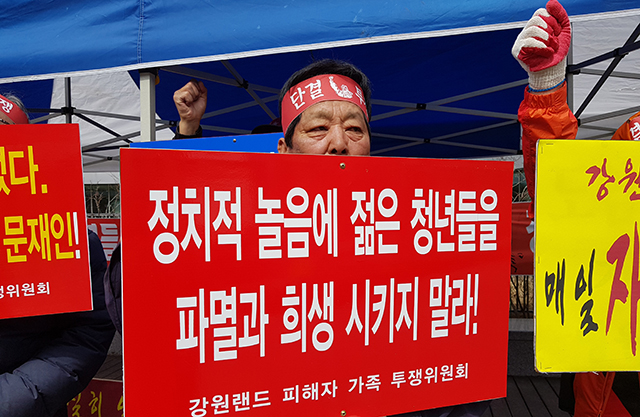 특히 “정부는 불공정하고 부당하게 입사한 채용자를 색출해 퇴출시켜야 하고 강원랜드는 부당한 직권면직 실행방침을 즉각 취소하라”며 “자녀들의 미래는 희망 대신 죽음과도 같은 고통이 기다리고 있는 현실을 우리는 도저히 납득할 수 없다”고 토로했다.