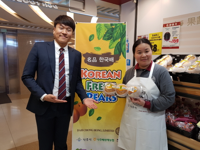 나주시(시장 강인규)가 지역 대표 특산품 나주배의 해외수출 판로 모색을 위해 지난 23일부터 이틀 간 홍콩 대형유통업체 D.C.H.마트 3개소에서 홍보 판촉행사를 개최했다.