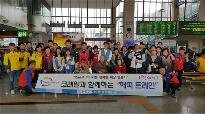 코레일 전남본부 사회봉사단(단장 김진호)은 3월 31일 ~ 4월 1일 광양시청 봉사회, ㈜서강기업, 국토정보공사 광양지사, 여수광양항만공사 등과 합동으로 희망 나눔 '해피트레인'을 운행하였다.