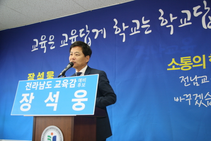 장석웅 전남교육감 예비후보는 3일, 오전 10시30분 전남교육청 브리핑룸에서 제1차 정책공약 발표 기자회견을 열고 ‘학생자치·학생존중 전남교육 만들기’ 5대 정책과 12개 세부정책 공약을 제시했다.