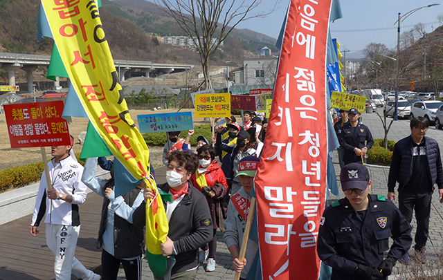 특히 지난달 30일 채용비리 사태와 관련, 1차로 198명에 대한 채용취소를 단행한 이후 관련자와 부모들의 반발로 조용하던 강원랜드 행정동 일대가 집회장소로 변모했다.