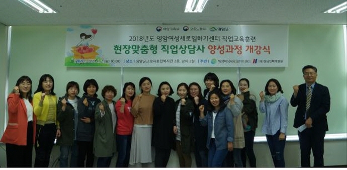 영암군(군수 전동평)에서 위탁운영하는 영암여성새로일하기센터(센터장 고영춘, 이하 ‘영암여성새일센터’)는 지난 4월 2일 영암군근로자종합복지관에서 경력단절 여성의 직업교육훈련 ‘현장맞춤형 직업상담사 과정’ 개강식을 가졌다.