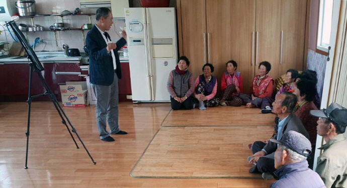 여수시 남면 어르신들이 경로당에서 한궁 대결을 펼쳤다.