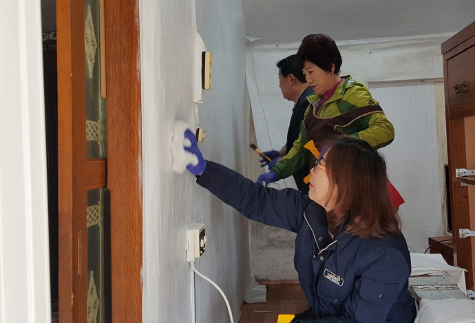 금성면지역사회보장협의체 위원들은 독거노인의 고독사가 사회이슈가 되는 시점에 홀로 사는 어르신 가정에 도움이 되고자 공직자 자원봉사와 연계해 도배 및 장판 교체 봉사활동을 했다.