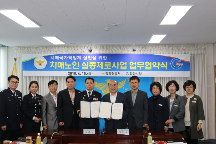 광양경찰서(서장 박종식)는 지난 10일 광양경찰서 2층 소회의실에서 광양시(시장 정현복)와 치매노인 실종제로를 위한 업무협약을 체결했다.