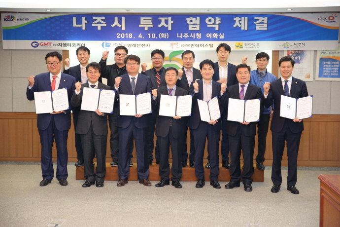 협약식에는 이재영 전남도지사 권한대행, 조재윤 나주시장 권한대행, 류창권 ㈜지엠티코리아 부사장, 박지수 ㈜일레븐전자 대표, 김열응 ㈜우만하이스틸 대표를 비롯한, 관계 공무원 50여 명이 참석했다.