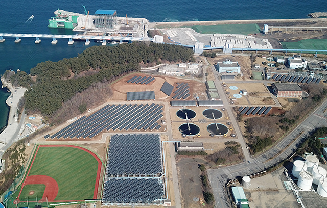 특히 이번 사업은 동해시와 협약을 통해 지역 업체가 건설에 직접 참여했다. 부대사업으로 하수처리장 내 ‘동트는 야구장’에 인조잔디를 설치해 동해시민은 물론 이곳을 찾는 야구선수들의 전지훈련 여건이 크게 개선되었다.