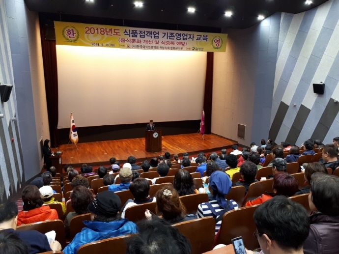교육은 정명희 민원봉사과 위생담당과 박진희(소상공인진흥센터), 이정화(LH교육지원센터)강사가 관련법령 안내, 식중독 예방교육, 음식문화개선교육, 외식업소 경영관리, 친절서비스 등을 각각 진행했다.
