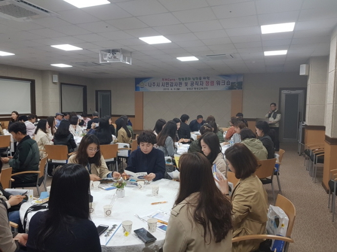 전남 나주시는 지난 9일 장성군 평생교육센터에서 ‘2018년 상반기 시민감사관 및 공직자 청렴 워크숍’을 갖고, 공직자 청렴 문화 조성을 다짐했다.