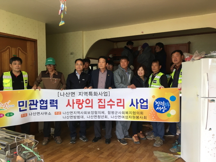 함평군 나산면(면장 정제원)은 지난 13일 나산면 지역특화사업의 일환인 ‘사랑의 집수리’ 사업을 민·관 협력을 통해 실시했다고 밝혔다.